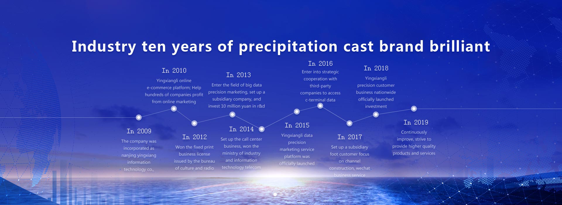 Our company insist on the service idea that served by the marketing effect , Help successful business on the downstream and upstream marketing places. Serve for all the companies marketing places . We could help enterprises to solve the difficulty for the marketing / and difficulty for the places and the difficulty for transfer . We have served for tens of trades and ten thousands of enterprises ,We is the leader organization with the trade value and brand for big data marketing