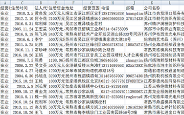 | * 基礎(chǔ)版采集企業(yè)數(shù)據(jù)包含字段:法人姓名、電話、郵箱地址、注冊(cè)資金、成立時(shí)間、企業(yè)狀態(tài) | |||