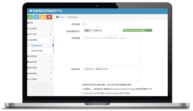• 每條短信都可以添加最多兩個變量,比如公司名稱、負責人姓名;