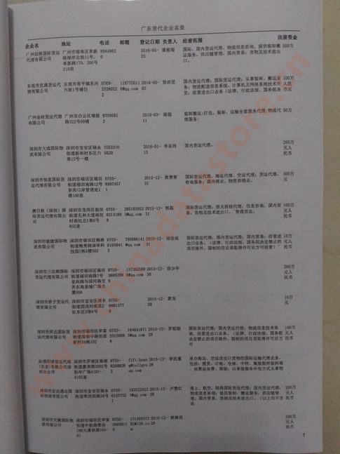 廣東貨運代理公司名單數據為Excel格式,信息可任意修改、復制、打印、導出及導入到傳真、郵件群發等軟件中,無任何限制。