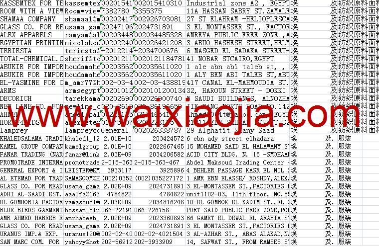 埃及采購商名單數據為Excel格式,信息可任意修改、復制、打印、導出及導入到傳真、郵件群發等軟件中,無任何限制。