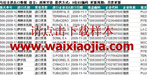 烏拉圭海關數據