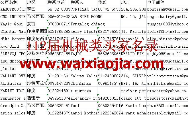 112屆廣交會采購商名單數據為Excel格式,信息可任意修改、復制、打印、導出及導入到傳真、郵件群發等軟件中,無任何限制。