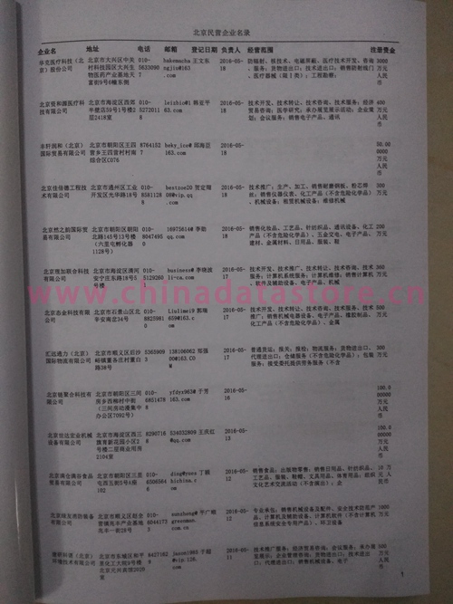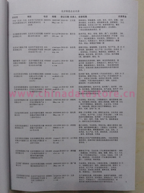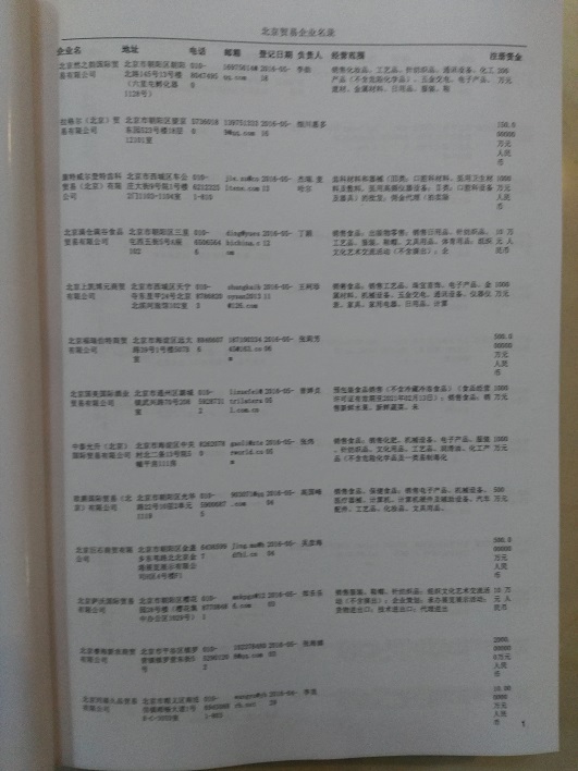 2021版最新北京企業(yè)黃頁(yè)包括《北京制造企業(yè)黃頁(yè)》、《北京貿(mào)易企業(yè)黃頁(yè)》、《北京民營(yíng)企業(yè)黃頁(yè)》、《北京外資企業(yè)黃頁(yè)》、《北京外貿(mào)企業(yè)黃頁(yè)》共五冊(cè),現(xiàn)優(yōu)惠價(jià):280元/冊(cè)。每?jī)?cè)內(nèi)容包括:?jiǎn)挝幻Q、地址、郵編、電話、傳真、郵箱、經(jīng)營(yíng)范圍等;北京企業(yè)黃頁(yè)涵蓋了近幾年來(lái)最新成立的、有一定規(guī)模的企業(yè),具有非常高的營(yíng)銷價(jià)值。有了這套黃頁(yè)開(kāi)展業(yè)務(wù)也有了針對(duì)性,也省去了盲目去尋找客戶名單而浪費(fèi)的時(shí)間了,工作效率也會(huì)有很大的提高。歡迎需要北京企業(yè)黃頁(yè)的朋友及時(shí)聯(lián)系我們!