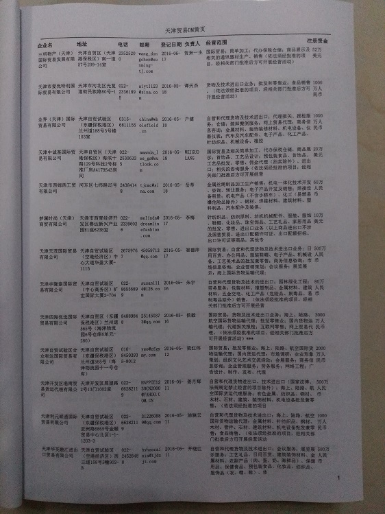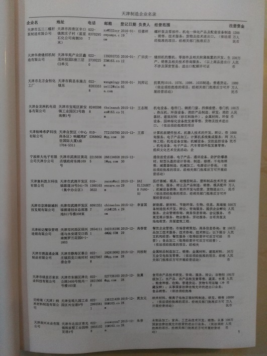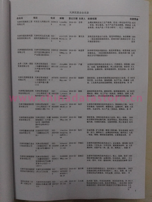 2021版最新天津企業(yè)黃頁(yè)包括《天津制造企業(yè)黃頁(yè)》、《天津貿(mào)易企業(yè)黃頁(yè)》、《天津民營(yíng)企業(yè)黃頁(yè)》、《天津外資企業(yè)黃頁(yè)》、《天津外貿(mào)企業(yè)黃頁(yè)》共五冊(cè),現(xiàn)優(yōu)惠價(jià):280元/冊(cè)。每?jī)?cè)內(nèi)容包括:?jiǎn)挝幻Q、地址、郵編、電話、傳真、郵箱、經(jīng)營(yíng)范圍等;天津企業(yè)黃頁(yè)涵蓋了近幾年來(lái)最新成立的、有一定規(guī)模的企業(yè),具有非常高的營(yíng)銷價(jià)值。有了這套黃頁(yè)開(kāi)展業(yè)務(wù)也有了針對(duì)性,也省去了盲目去尋找客戶名單而浪費(fèi)的時(shí)間了,工作效率也會(huì)有很大的提高。歡迎需要天津企業(yè)黃頁(yè)的朋友及時(shí)聯(lián)系我們!