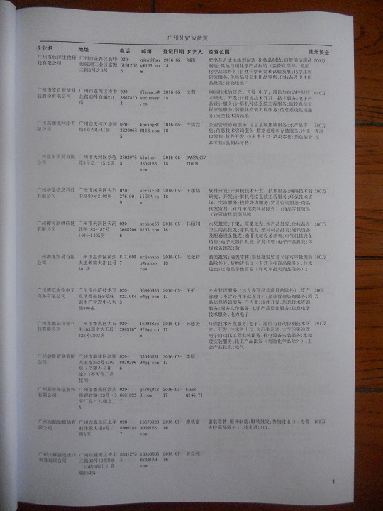 2021版最新廣州企業黃頁包括《廣州制造企業黃頁》、《廣州貿易企業黃頁》、《廣州民營企業黃頁》、《廣州外資企業黃頁》、《廣州外貿企業黃頁》共五冊,現優惠價:280元/冊。每冊內容包括:單位名稱、地址、郵編、電話、傳真、郵箱、經營范圍等;廣州企業黃頁涵蓋了近幾年來最新成立的、有一定規模的企業,具有非常高的營銷價值。有了這套黃頁開展業務也有了針對性,也省去了盲目去尋找客戶名單而浪費的時間了,工作效率也會有很大的提高。歡迎需要廣州企業黃頁的朋友及時聯系我們!