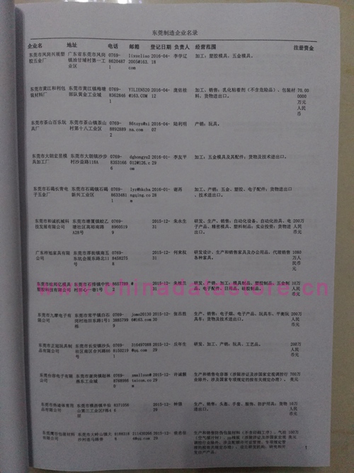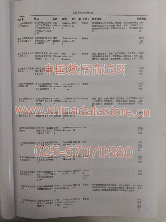 2021版最新東莞企業黃頁包括《東莞制造企業黃頁》、《東莞貿易企業黃頁》、《東莞民營企業黃頁》、《東莞外資企業黃頁》、《東莞外貿企業黃頁》共五冊,現優惠價:280元/冊。每冊內容包括:單位名稱、地址、郵編、電話、傳真、郵箱、經營范圍等;東莞企業黃頁涵蓋了近幾年來最新成立的、有一定規模的企業,具有非常高的營銷價值。有了這套黃頁開展業務也有了針對性,也省去了盲目去尋找客戶名單而浪費的時間了,工作效率也會有很大的提高。歡迎需要東莞企業黃頁的朋友及時聯系我們!