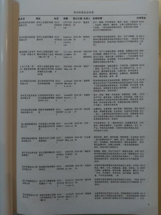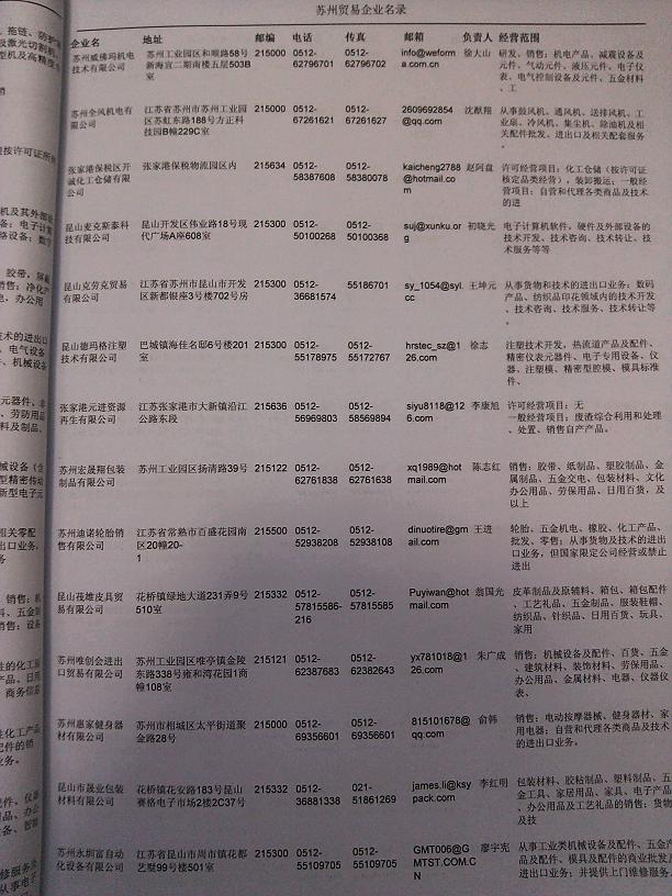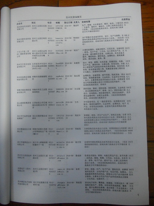 2021版最新蘇州企業黃頁包括《蘇州制造企業黃頁》、《蘇州貿易企業黃頁》、《蘇州民營企業黃頁》、《蘇州外資企業黃頁》、《蘇州外貿企業黃頁》共五冊,現優惠價:280元/冊。每冊內容包括:單位名稱、地址、郵編、電話、傳真、郵箱、經營范圍等;蘇州企業黃頁涵蓋了近幾年來最新成立的、有一定規模的企業,具有非常高的營銷價值。有了這套黃頁開展業務也有了針對性,也省去了盲目去尋找客戶名單而浪費的時間了,工作效率也會有很大的提高。歡迎需要蘇州企業黃頁的朋友及時聯系我們!