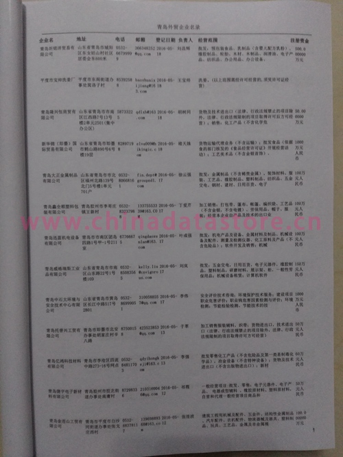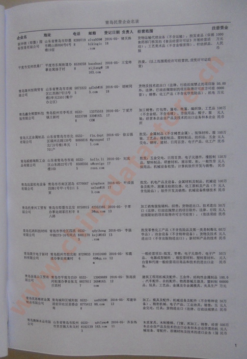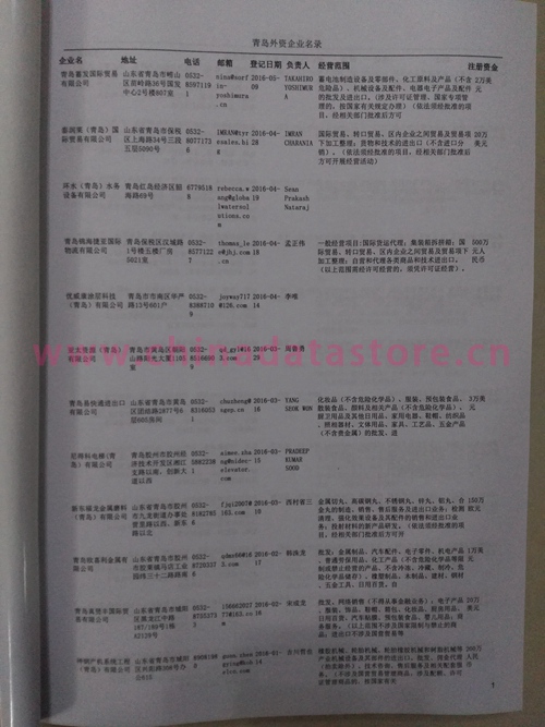 2021版最新青島企業(yè)黃頁包括《青島制造企業(yè)黃頁》、《青島貿(mào)易企業(yè)黃頁》、《青島民營企業(yè)黃頁》、《青島外資企業(yè)黃頁》、《青島外貿(mào)企業(yè)黃頁》共五冊,現(xiàn)優(yōu)惠價:280元/冊。每冊內(nèi)容包括:單位名稱、地址、郵編、電話、傳真、郵箱、經(jīng)營范圍等;青島企業(yè)黃頁涵蓋了近幾年來最新成立的、有一定規(guī)模的企業(yè),具有非常高的營銷價值。有了這套黃頁開展業(yè)務(wù)也有了針對性,也省去了盲目去尋找客戶名單而浪費的時間了,工作效率也會有很大的提高。歡迎需要青島企業(yè)黃頁的朋友及時聯(lián)系我們!