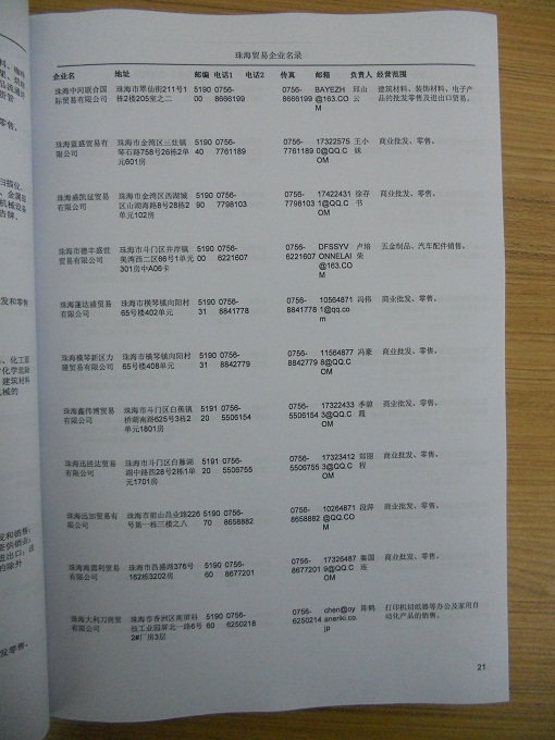 2021版珠海企業(yè)名錄