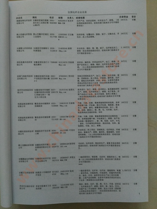 | 全國化纖企業黃頁 | 全國所有化纖企業黃頁 | 80% - 90% | 1000元 | 附贈上下冊化纖紙質印刷品 |