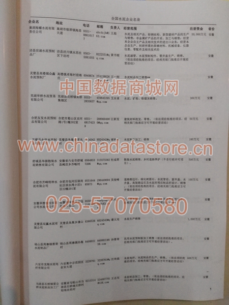 | 某省或直轄市 | 如上海、浙江水泥企業(yè)名單 | 80% - 90% | 600元 | 附贈一冊水泥紙質(zhì)印刷品 |