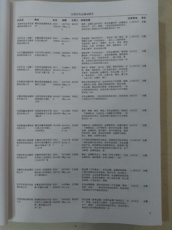 某個(gè)城市 如深圳、南京有色金屬企業(yè)黃頁(yè) 80% - 90% 300元 無(wú)