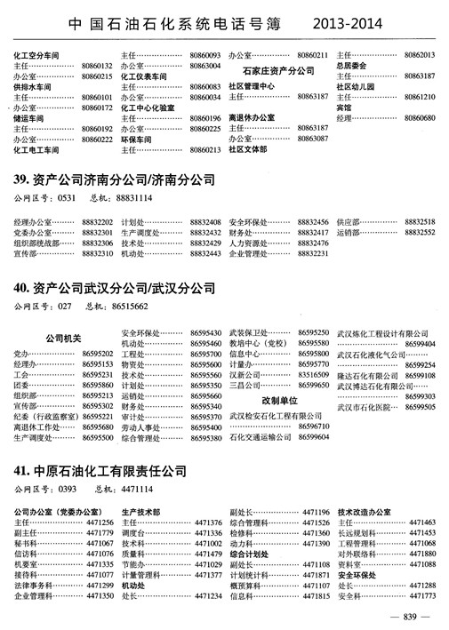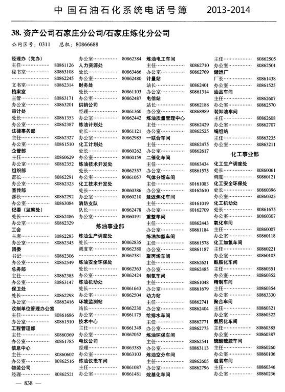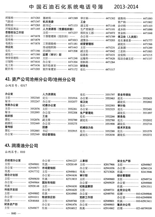 中國(guó)石油石化系統(tǒng)電話號(hào)薄