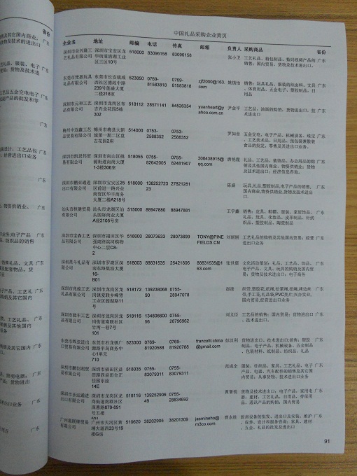 2025年新版中國禮品采購企業黃頁,收錄了全國各地經營范圍涉及禮品產品的貿易企業,這些都是頗具實力的禮品產品的中國采購商。黃頁內容包含:企業名稱、地址、電話、傳真、郵箱、經營范圍、省份、注冊資金等信息。該套黃頁包含一個黃頁光碟加一冊紙質書刊,全國價格:1500元,省/直轄市價格:400元,城市價格:200元,共收錄了全國各地大概7116(統計日期:2018.1)家禮品產品采購企業。黃頁光碟中是EXCEL格式,信息可任意修改、復制、打印、導出及導入到傳真、郵件群發等軟件中,無任何限制。