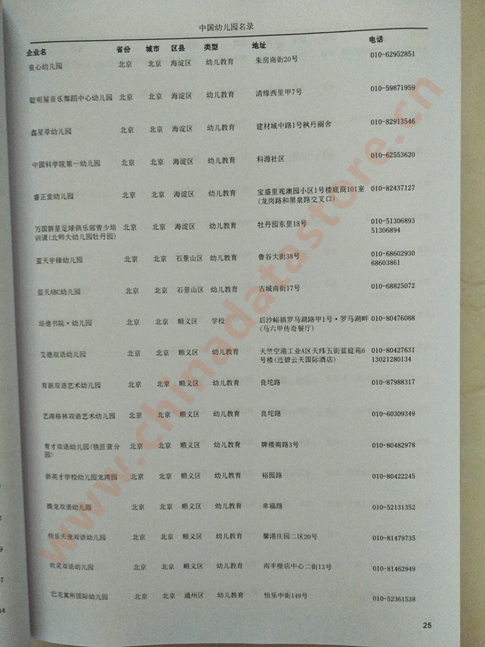 某省或直轄市 如上海、浙江幼兒園名單  80% - 90% 500元 附贈一冊全國幼兒園名單印刷品