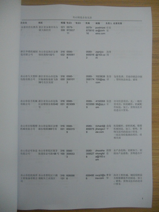 2021版最新舟山企業(yè)黃頁包括《舟山制造企業(yè)黃頁》、《舟山民營企業(yè)黃頁》,現(xiàn)優(yōu)惠價:280元/冊。每冊內(nèi)容包括:單位名稱、地址、郵編、電話、傳真、郵箱、經(jīng)營范圍等;舟山企業(yè)黃頁涵蓋了近幾年來最新成立的、有一定規(guī)模的企業(yè),具有非常高的營銷價值。有了這套黃頁開展業(yè)務(wù)也有了針對性,也省去了盲目去尋找客戶名單而浪費(fèi)的時間了,工作效率也會有很大的提高。歡迎需要舟山企業(yè)黃頁的朋友及時聯(lián)系我們!