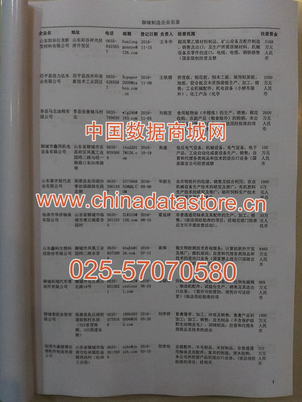 2021版最新聊城企業黃頁包括《聊城制造企業黃頁》、《聊城民營企業黃頁》,現優惠價:280元/冊。每冊內容包括:單位名稱、地址、郵編、電話、傳真、郵箱、經營范圍等;聊城企業黃頁涵蓋了近幾年來最新成立的、有一定規模的企業,具有非常高的營銷價值。有了這套黃頁開展業務也有了針對性,也省去了盲目去尋找客戶名單而浪費的時間了,工作效率也會有很大的提高。歡迎需要聊城企業黃頁的朋友及時聯系我們!