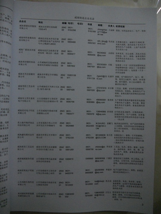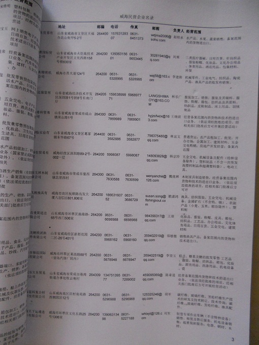 2021版最新威海企業黃頁包括《威海制造企業黃頁》、《威海民營企業黃頁》,現優惠價:280元/冊。每冊內容包括:單位名稱、地址、郵編、電話、傳真、郵箱、經營范圍等;威海企業黃頁涵蓋了近幾年來最新成立的、有一定規模的企業,具有非常高的營銷價值。有了這套黃頁開展業務也有了針對性,也省去了盲目去尋找客戶名單而浪費的時間了,工作效率也會有很大的提高。歡迎需要威海企業黃頁的朋友及時聯系我們!