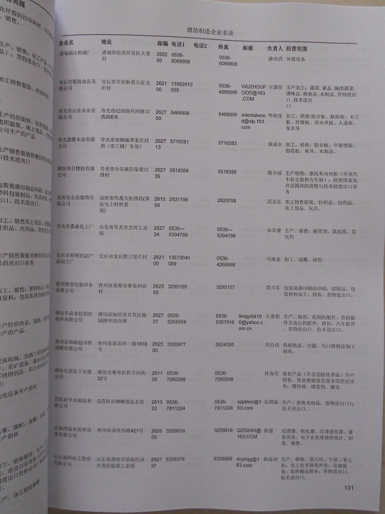 2021版最新濰坊企業黃頁包括《濰坊制造企業黃頁》、《濰坊民營企業黃頁》,現優惠價:280元/冊。每冊內容包括:單位名稱、地址、郵編、電話、傳真、郵箱、經營范圍等;濰坊企業黃頁涵蓋了近幾年來最新成立的、有一定規模的企業,具有非常高的營銷價值。有了這套黃頁開展業務也有了針對性,也省去了盲目去尋找客戶名單而浪費的時間了,工作效率也會有很大的提高。歡迎需要濰坊企業黃頁的朋友及時聯系我們!