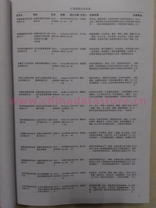 | 江蘇紡織企業黃頁 | 所有江蘇紡織企業黃頁 | 80% - 90% | 600元 | 附贈一冊江蘇紡織紙質印刷品 |