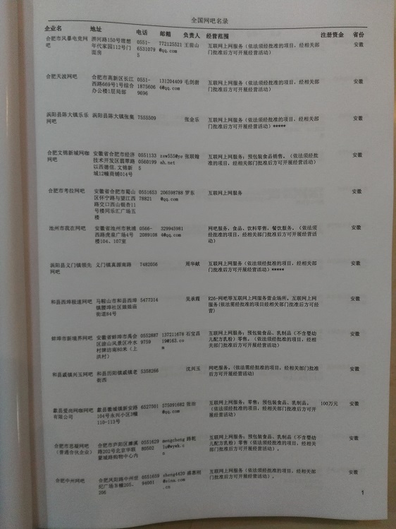 某省或直轄市 如上海、浙江網吧名單  80% - 90% 600元 附贈一冊網吧紙質印刷品