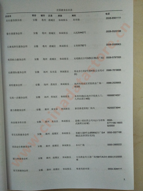 | 全國健身房黃頁 | 全國健身房黃頁 | 80% - 90% | 2000元 | 附贈上下兩冊健身房紙質(zhì)印刷品 |