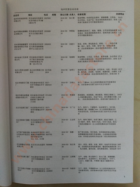 2021版最新滄州企業黃頁包括《滄州制造企業黃頁》、《滄州民營企業黃頁》,現優惠價:280元/冊。每冊內容包括:單位名稱、地址、郵編、電話、傳真、郵箱、經營范圍等;滄州企業黃頁涵蓋了近幾年來最新成立的、有一定規模的企業,具有非常高的營銷價值。有了這套黃頁開展業務也有了針對性,也省去了盲目去尋找客戶名單而浪費的時間了,工作效率也會有很大的提高。歡迎需要滄州企業黃頁的朋友及時聯系我們!