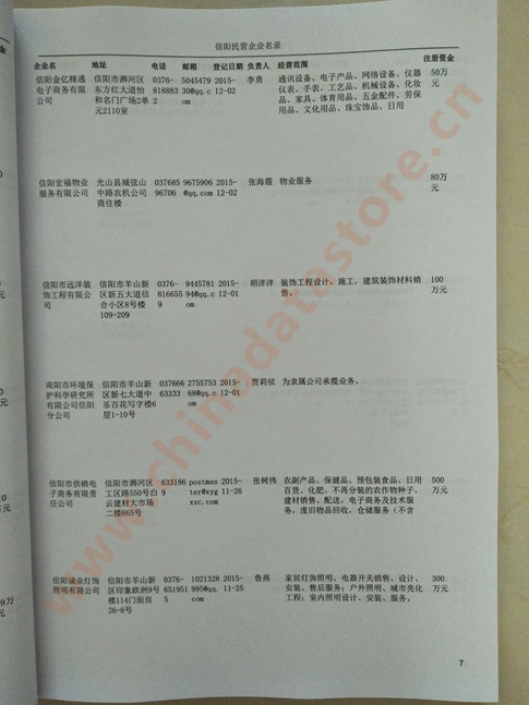 2021版最新信陽企業黃頁包括《信陽制造企業黃頁》、《信陽民營企業黃頁》,現優惠價:280元/冊。每冊內容包括:單位名稱、地址、郵編、電話、傳真、郵箱、經營范圍等;信陽企業黃頁涵蓋了近幾年來最新成立的、有一定規模的企業,具有非常高的營銷價值。有了這套黃頁開展業務也有了針對性,也省去了盲目去尋找客戶名單而浪費的時間了,工作效率也會有很大的提高。歡迎需要信陽企業黃頁的朋友及時聯系我們!