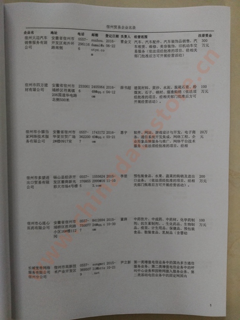 2021版最新宿州企業黃頁包括《宿州制造企業黃頁》、《宿州民營企業黃頁》,現優惠價:280元/冊。每冊內容包括:單位名稱、地址、郵編、電話、傳真、郵箱、經營范圍等;宿州企業黃頁涵蓋了近幾年來最新成立的、有一定規模的企業,具有非常高的營銷價值。有了這套黃頁開展業務也有了針對性,也省去了盲目去尋找客戶名單而浪費的時間了,工作效率也會有很大的提高。歡迎需要宿州企業黃頁的朋友及時聯系我們!