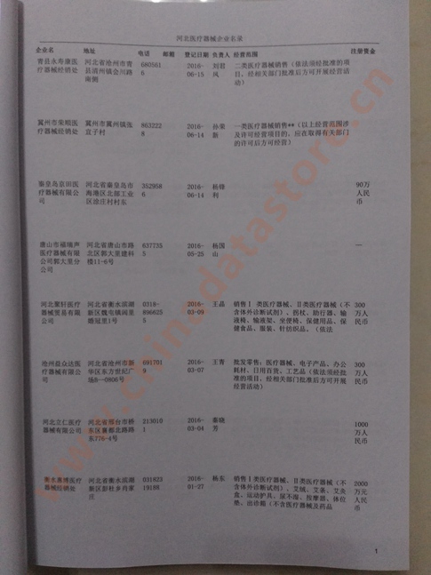 | 河北醫(yī)療器械企業(yè)黃頁 | 所有河北醫(yī)療器械企業(yè)黃頁 | 80% - 90% | 600元 | 附贈(zèng)一冊(cè)河北醫(yī)療器械紙質(zhì)印刷品 |
