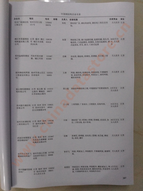 | 某省或直轄市 | 如上海、浙江鋼結構企業名單 | 80% - 90% | 600元 | 附贈一冊鋼結構紙質印刷品 |