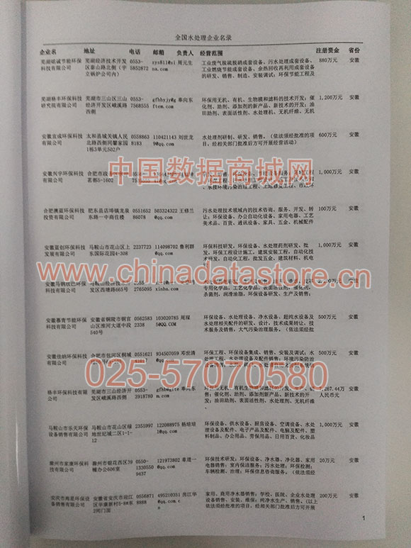 | 某省或直轄市 | 如上海、浙江水處理設備企業名單 | 80% - 90% | 600元 | 附贈一冊水處理紙質印刷品 |