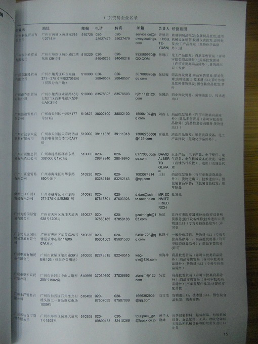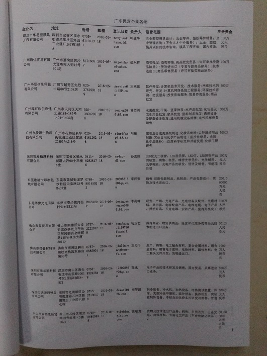 2021版最新廣東企業(yè)黃頁(yè)包括《廣東制造企業(yè)黃頁(yè)》、《廣東貿(mào)易企業(yè)黃頁(yè)》、《廣東民營(yíng)企業(yè)黃頁(yè)》共三冊(cè),優(yōu)惠價(jià):280元/冊(cè)。每?jī)?cè)內(nèi)容包括:?jiǎn)挝幻Q、地址、郵編、電話、傳真、郵箱、經(jīng)營(yíng)范圍等;廣東企業(yè)黃頁(yè)涵蓋了近幾年來最新成立的、有一定規(guī)模的企業(yè),具有非常高的營(yíng)銷價(jià)值。有了這套黃頁(yè)開展業(yè)務(wù)也有了針對(duì)性,也省去了盲目去尋找客戶名單而浪費(fèi)的時(shí)間了,工作效率也會(huì)有很大的提高。歡迎需要廣東企業(yè)黃頁(yè)的朋友及時(shí)聯(lián)系我們!