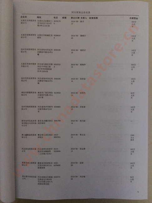 2021版最新河北企業(yè)黃頁(yè)包括《河北制造企業(yè)黃頁(yè)》、《河北貿(mào)易企業(yè)黃頁(yè)》、《河北民營(yíng)企業(yè)黃頁(yè)》共三冊(cè),優(yōu)惠價(jià):280元/冊(cè)。每?jī)?cè)內(nèi)容包括:?jiǎn)挝幻Q、地址、郵編、電話、傳真、郵箱、經(jīng)營(yíng)范圍等;河北企業(yè)黃頁(yè)涵蓋了近幾年來(lái)最新成立的、有一定規(guī)模的企業(yè),具有非常高的營(yíng)銷價(jià)值。有了這套黃頁(yè)開(kāi)展業(yè)務(wù)也有了針對(duì)性,也省去了盲目去尋找客戶名單而浪費(fèi)的時(shí)間了,工作效率也會(huì)有很大的提高。歡迎需要河北企業(yè)黃頁(yè)的朋友及時(shí)聯(lián)系我們!