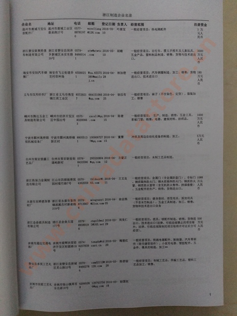 2021版最新浙江企業黃頁包括《浙江制造企業黃頁》、《浙江貿易企業黃頁》、《浙江民營企業黃頁》共三冊,優惠價:280元/冊。每冊內容包括:單位名稱、地址、郵編、電話、傳真、郵箱、經營范圍等;浙江企業黃頁涵蓋了近幾年來最新成立的、有一定規模的企業,具有非常高的營銷價值。有了這套黃頁開展業務也有了針對性,也省去了盲目去尋找客戶名單而浪費的時間了,工作效率也會有很大的提高。歡迎需要浙江企業黃頁的朋友及時聯系我們!