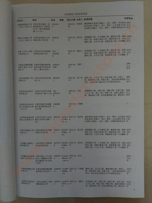 | 天津建筑工程企業黃頁 | 所有天津建筑工程企業黃頁 | 80% - 90% | 600元 | 附贈一冊天津建筑工程紙質印刷品 |