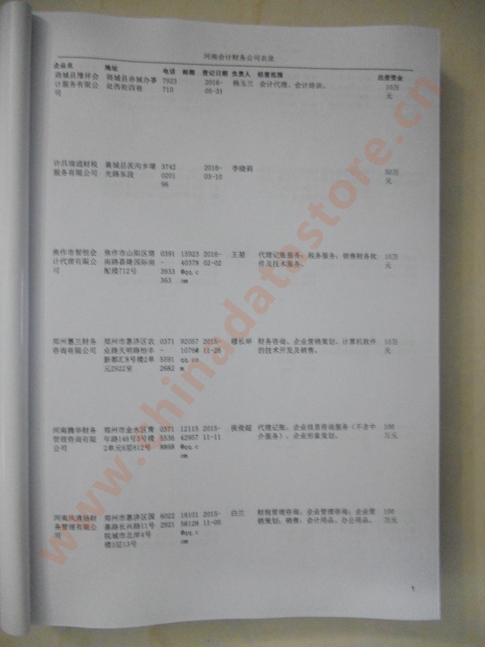 | 河南會計財務企業黃頁 | 所有河南會計財務企業黃頁 | 80% - 90% | 600元 | 附贈一冊河南會計財務紙質印刷品 |