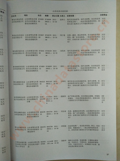 | 山東農業企業黃頁 | 所有山東農業企業黃頁 | 80% - 90% | 600元 | 附贈一冊山東農業企業紙質印刷品 |