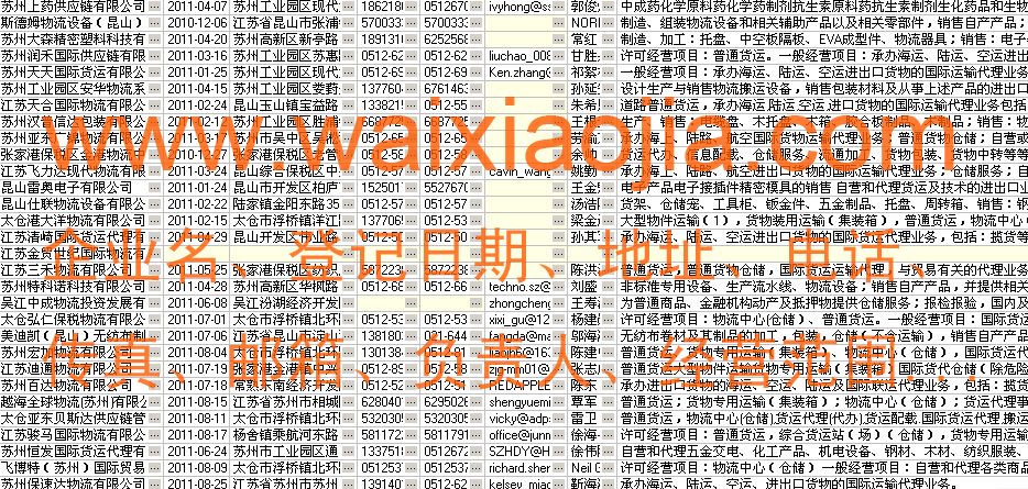 蘇州貨運代理公司名單數據為Excel格式,信息可任意修改、復制、打印、導出及導入到傳真、郵件群發等軟件中,無任何限制。