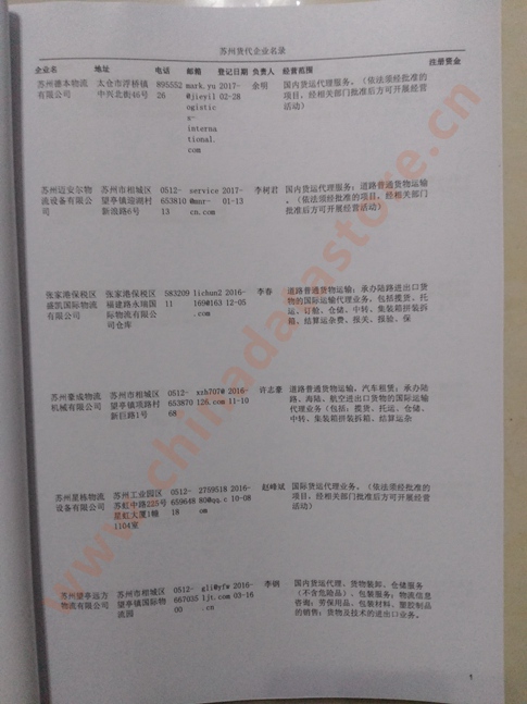 蘇州貨運公司黃頁包括:企業名稱、負責人聯系方式、企業電話、傳真、Email、經營范圍、地址、郵編等信息。