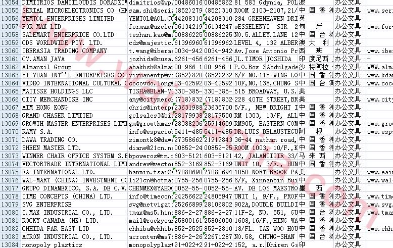 辦公文教采購商名單數據為Excel格式,信息可任意修改、復制、打印、導出及導入到傳真、郵件群發等軟件中,無任何限制。