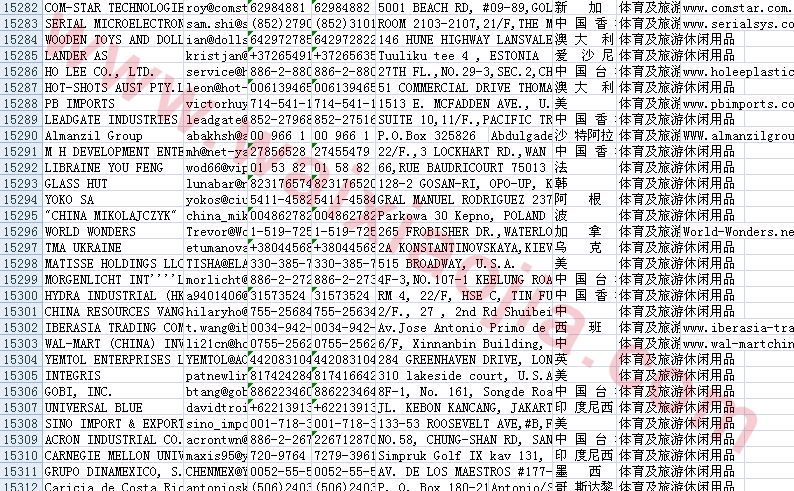 體育休閑用品采購商名單數據為Excel格式,信息可任意修改、復制、打印、導出及導入到傳真、郵件群發等軟件中,無任何限制。