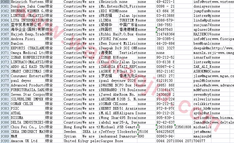 綜合采購商名單數據為Excel格式,信息可任意修改、復制、打印、導出及導入到傳真、郵件群發等軟件中,無任何限制。