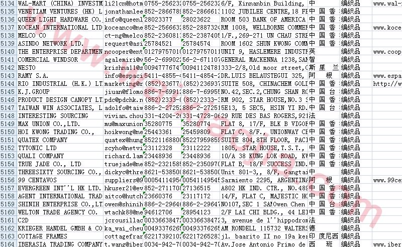編織品采購商名單數據為Excel格式,信息可任意修改、復制、打印、導出及導入到傳真、郵件群發等軟件中,無任何限制。