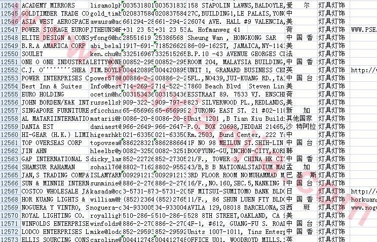 燈具燈飾采購商名單數據為Excel格式,信息可任意修改、復制、打印、導出及導入到傳真、郵件群發(fā)等軟件中,無任何限制。
