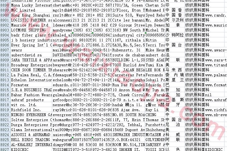 紡織原料面料采購商名單數據為Excel格式,信息可任意修改、復制、打印、導出及導入到傳真、郵件群發等軟件中,無任何限制。