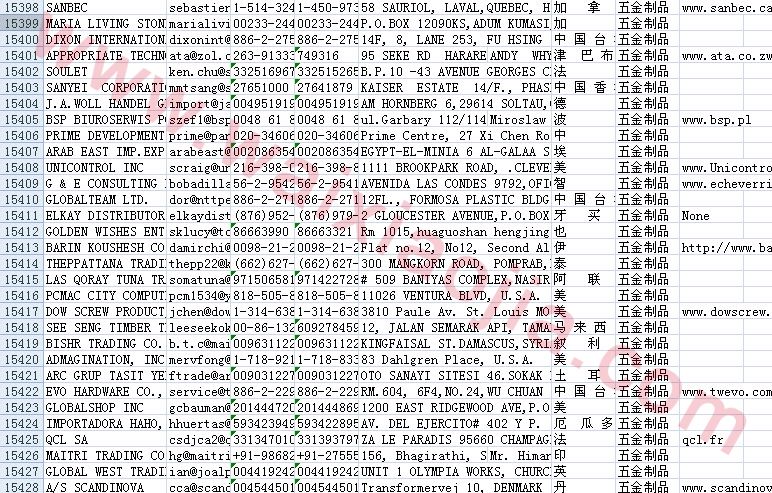 五金制品采購商名單數據為Excel格式,信息可任意修改、復制、打印、導出及導入到傳真、郵件群發等軟件中,無任何限制。