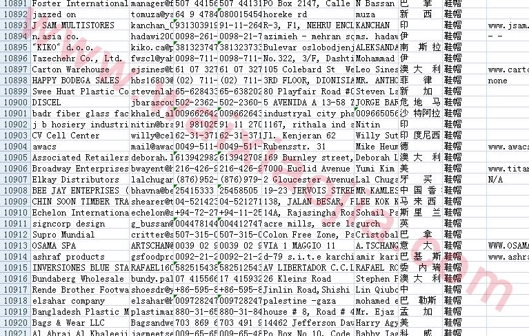 鞋帽采購商名單數(shù)據(jù)為Excel格式,信息可任意修改、復(fù)制、打印、導(dǎo)出及導(dǎo)入到傳真、郵件群發(fā)等軟件中,無任何限制。