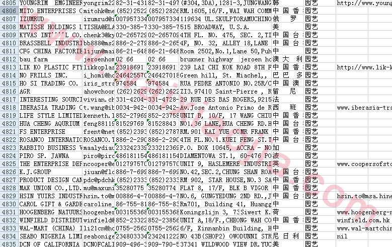 園藝采購商名單數(shù)據(jù)為Excel格式,信息可任意修改、復制、打印、導出及導入到傳真、郵件群發(fā)等軟件中,無任何限制。
